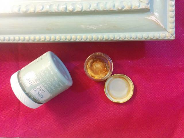 צבעתי 2 שכבות צבע גיר שנשאר לי מהשידה הגדולה ששיפצתי, צבע של אמריקנה דקור גוון ירוק וינטג' (כמובן שצריך לחכות ייבוש מלא בין השכבות) ולאחר מכן שייפתי עם נייר ליטוש עדיין גריט 320. אחרי שניקיתי את שאריות השיוף עברתי עם האצבעות על המסגרת ועל השיופים עם קצת משחת גולדפינגר מטאלית בגוון זהב בשביל להעניק מראה קצת יישן וינטג'י ו- זהו! הפעם החלטתי שאין צורך להוסיף שכבת לכה כיוון שהמראה על הקיר, ואין סיכוי שתיפצע כך שהצבע לא אמור לרדת..